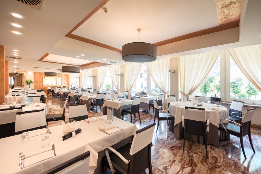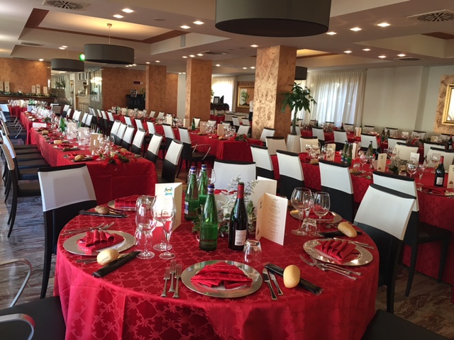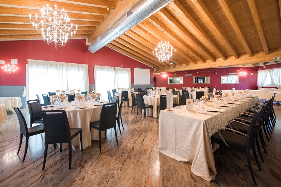 Il Ristorante dispone di due sale da pranzo che possono essere utilizzate separatamente, ed in tal caso offrono una capienza di 250 posti l’una e di 140 posti l’altra, oppure congiuntamente, avendo così a disposizione un’unica grande sala di circa 400 posti. Le due sale del nostro Ristorante, luminose e veramente accoglienti, entrambe climatizzate, sono l’ideale per ricevimenti di nozze, cerimonie, battesimi, comunioni e cresime, compleanni, pranzi, cene di lavoro e meeting. |
