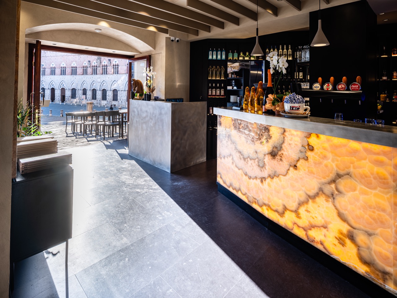 Il Ristorante Il Tufo è aperto tutto il giorno, dalla colazione con toast e caffè fino ai cocktail serali, passando per pranzi, aperitivi e cene affacciate su Piazza del Campo. La cucina propone piatti di carne e di pesce, intrecciando creatività e tradizione toscana: dalla bistecca alla fiorentina ai salumi e pecorini locali, fino alle specialità di Cinta Senese e alle ricette a base di cinghiale. Non mancano rivisitazioni moderne che affiancano i sapori autentici del territorio, per un’esperienza che racconta Siena attraverso i suoi piatti più iconici.